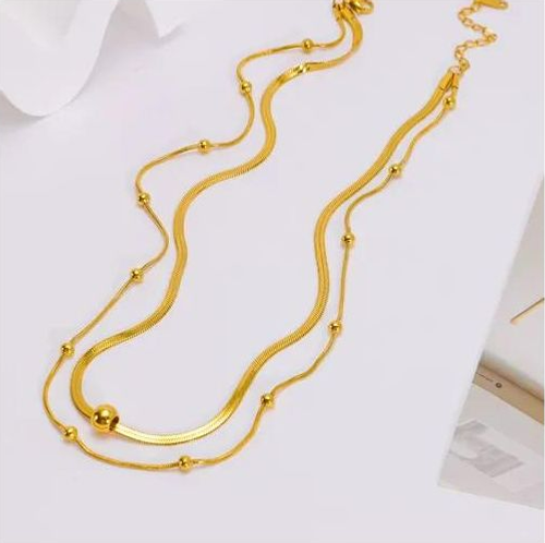 Fashionable gold-plated beaded chain titanium steel metal jewelry stacking necklace for women