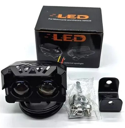 Motorcycle double eye headlight LED yellow and white high and low beam waterproof external electric vehicle headlight