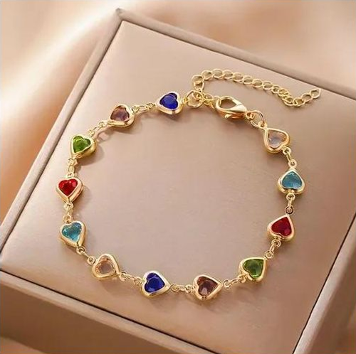 New hot-selling 18k gold-plated non-fading ethnic bracelet Ins style heart zircon beaded bracelet