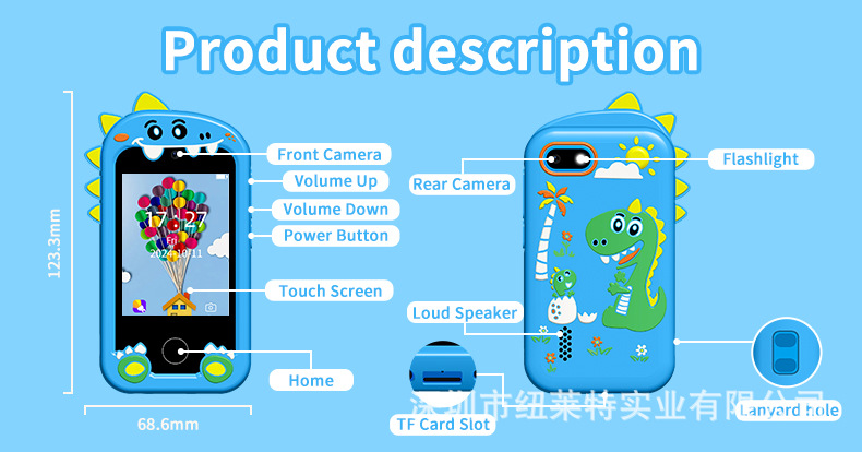 Children's mobile phone camera touch screen educational early education machine dinosaur rainbow horse photo recording game machine gift